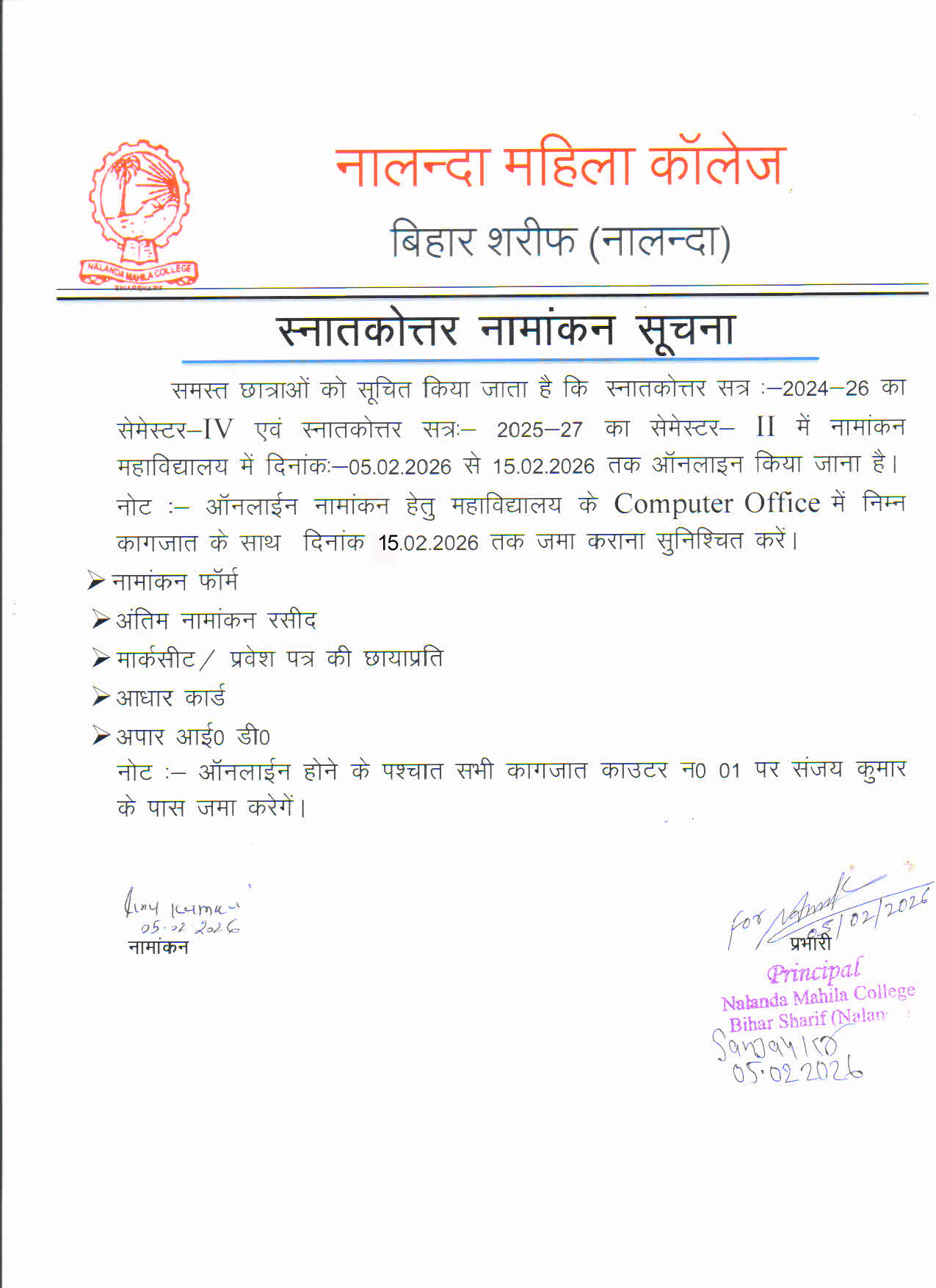 POST GRADUATE SEM-2, SEM-4 ADMISSION NOTICE