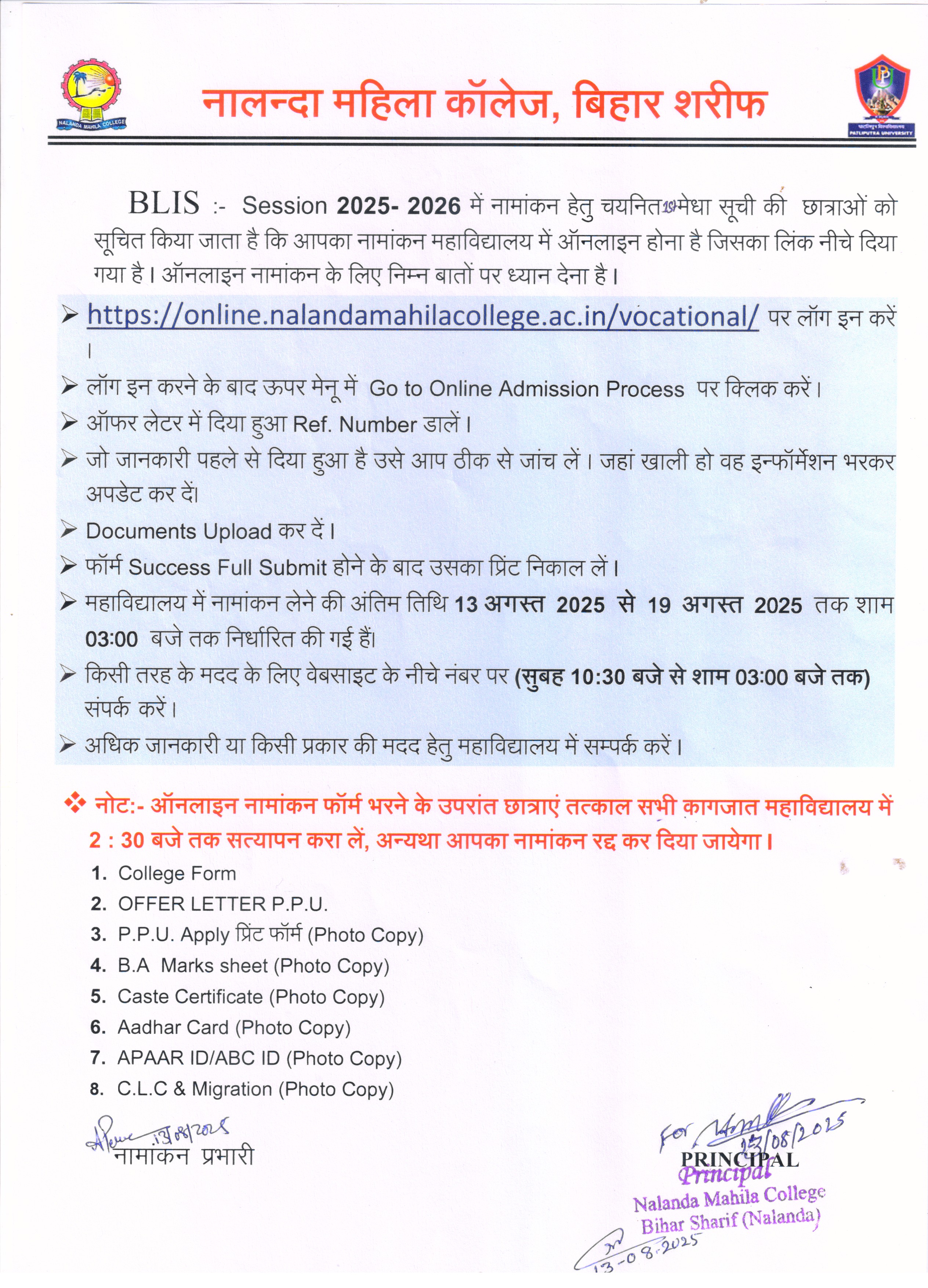 News : NOTICE REGARDING BLIS ADMISSION 1ST YEAR (2025-26)